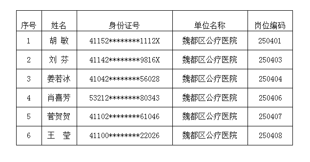 按照《2025年魏都区特招医学院校毕业生和全科医生特设岗位计划实施方案》要求,2025年11月18日,魏都区特招医学院校毕业生和全科医生特设岗位计划考察工作已进行完毕,参加考察考生6人。根据考察结论,6名考生均考察合格,名单如下:
